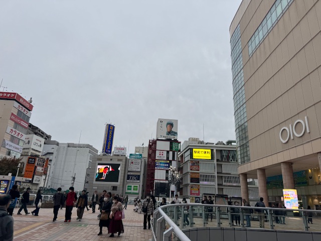 西口を出て、ペデストリアンデッキを「きたろーど1010」商店街の方向へまっすぐ進みます。