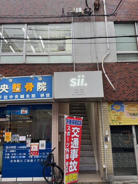 『sii.』(美容室)の看板がある階段が入口です。