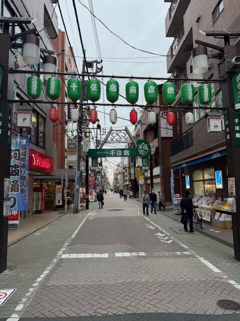 左手にドン・キホーテが見えてきたら、その交差点を右折します。『千住宿商店街』(旧日光街道)に入ります。